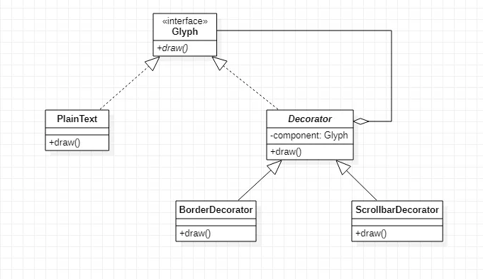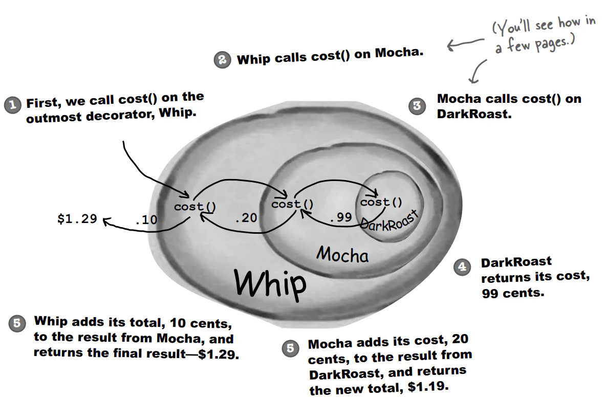 Gắn các trách nhiệm bổ sung cho một đối tượng một cách linh hoạt bằng cách để nó wrap trong một class khác cùng kế thừa một superclass. Cho phép một sự thay thế linh hoạt cho subclassing để mở rộng chức năng